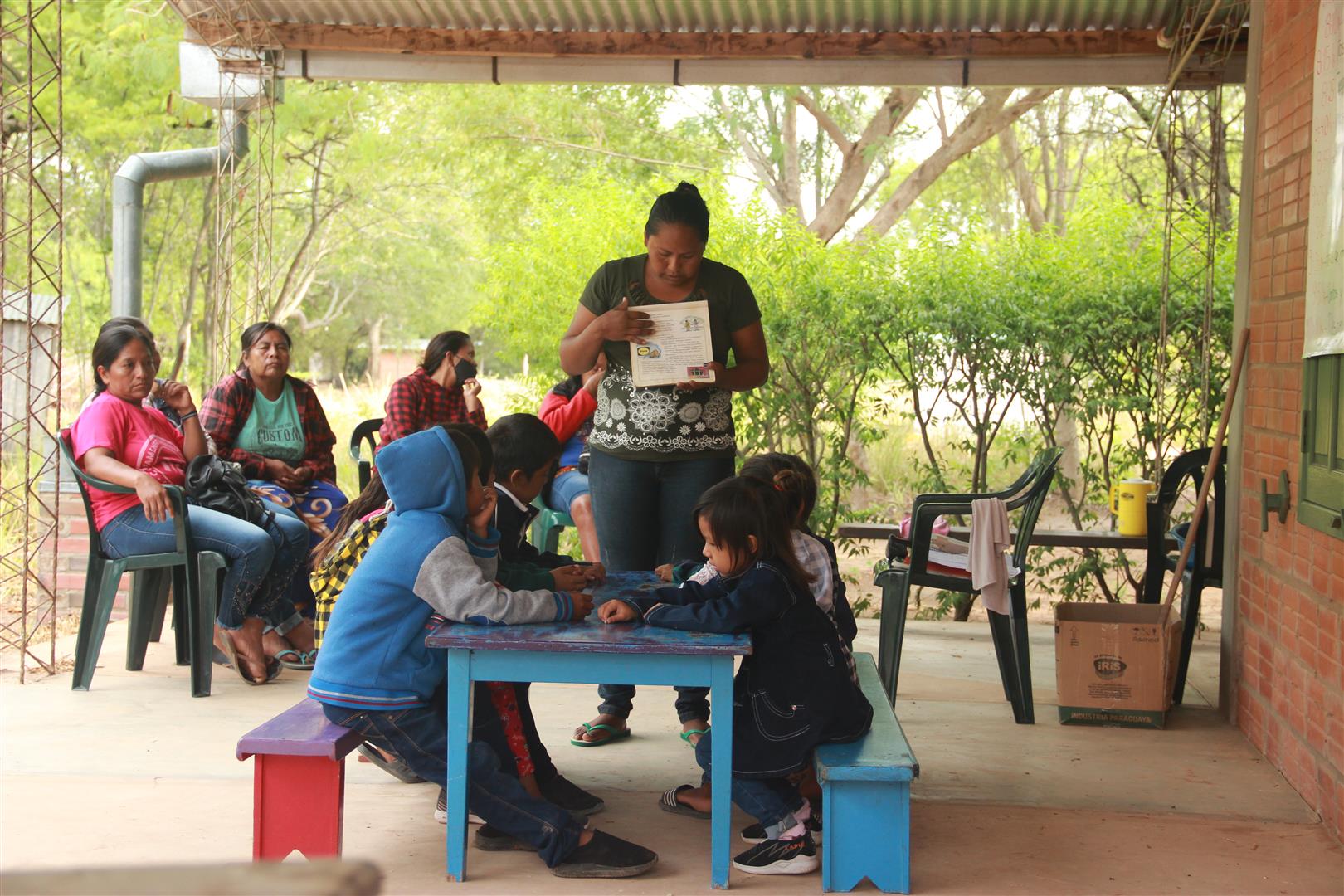 Die Arbeitszeit wurde jeden Tag von 07:15 Uhr bis 20:00 Uhr im Auditorium von Yalve Sanga verbracht. In dieser Zeit wurden Andachten gebracht, neue Lieder eingeübt, Bibelverse erlernt, Tisch- und Hofspiele gelernt, Geschichtenerzählen geübt, neue Arbeitsblätter vorgestellt und vieles mehr. Am Freitagvormittag wurde mit Kindern aus zwei Escuelitas praktisch vorgeführt, wie ein Vormittag in der Escuelita aussieht. Frau Alejandra Rivas von LIPPEN brachte am Freitagnachmittag einen Vortrag zum Thema: ”Wie kann ich ein Kind zu Jesus führen?” Zur Krönung des Tages wurde dann eine “Noche social” organisiert. Dazu schreibt Zaezilia Hiebert: „Was mich am meisten bewegte war der Sozialabend. Durch die Zeugnisse bekam ich mehr Einblick aus dem Leben der einzelnen Familien. Den geselligen Teil fand ich sehr gut, da wir alle gemeinsam wirklich von Herzen lachen konnten. Ich finde die Herzlichkeit der Indianer sehr gut. Es tut so gut, wenn eine völlig fremde Indigene kommt und eine herzliche Umarmung gibt. Es ist zwar eine intensive Woche gewesen, aber ich kann sagen, ich kam gesegnet nach Hause.“
