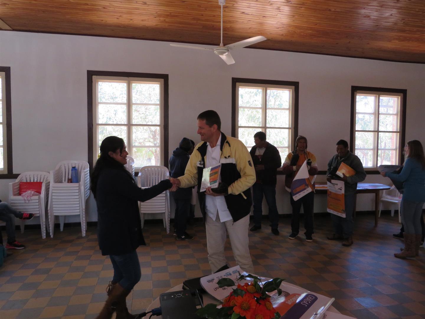 Dr. Dyck entrega el material educativo a los promotores enhlet y nivacle en Yalve Sanga