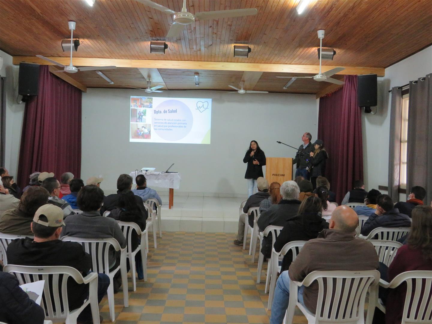 Fueron recibidos primeramente en el Auditorio de la ASCIM en Yalve Sanga, a fin de conocer a la organización por medio de una presentación brindada por el director ejecutivo de la ASCIM, Sr. Willy Franz. Así también, la docente Mirta Pérez, oriunda de la comunidad Campo Alegre, compartió con los visitantes su testimonio de vida. El administrador de la comunidad Casuarina, en su función de presidente del consejo de administración de la FIDA (Fundación Indígena para el Desarrollo Agropecuario), explicó el trabajo de la misma.