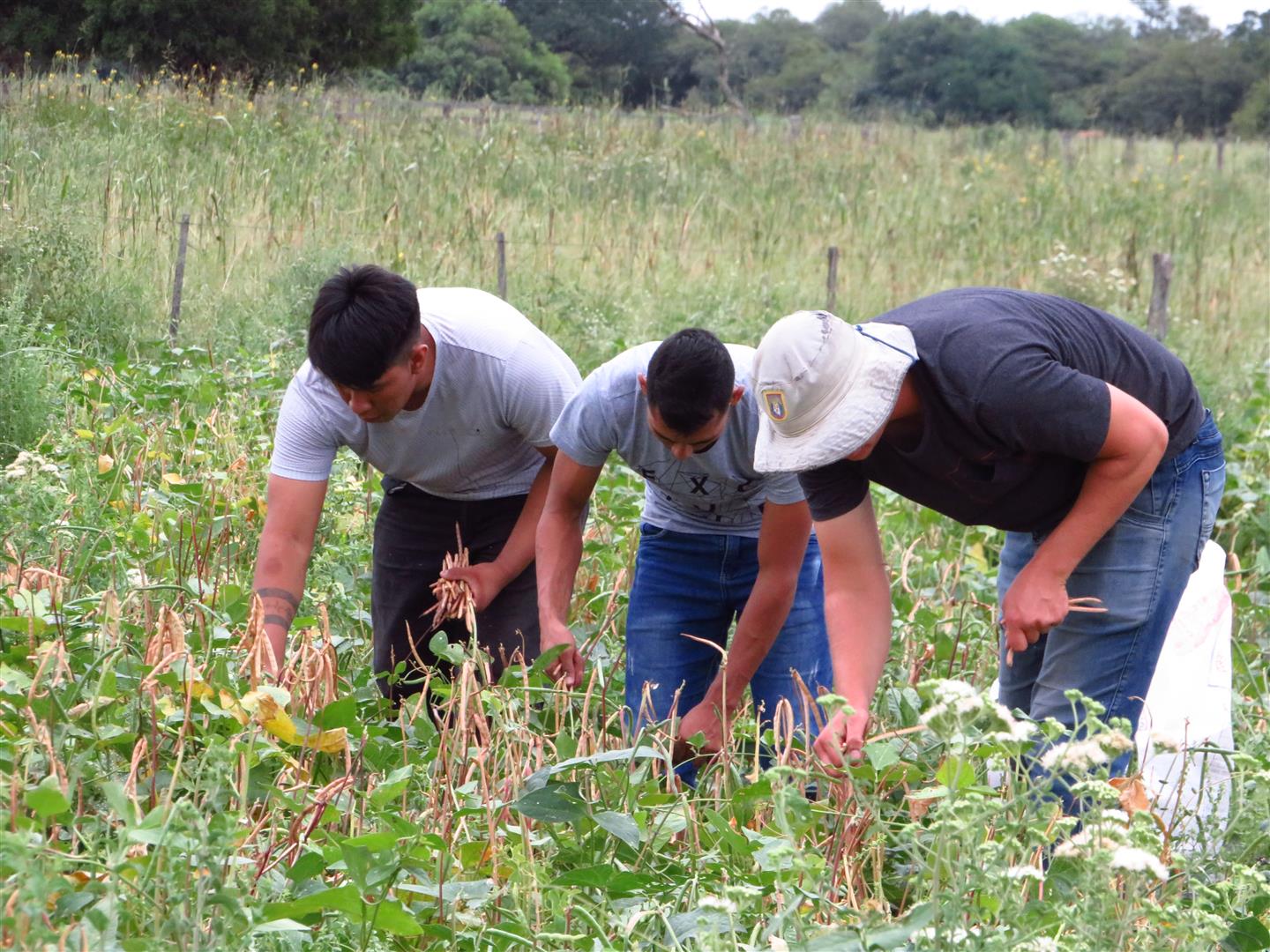 La cosecha es realizada de manera manual por los alumnos, mientras que el procesamiento posterior de los porotos será realizado por el personal de la institución.