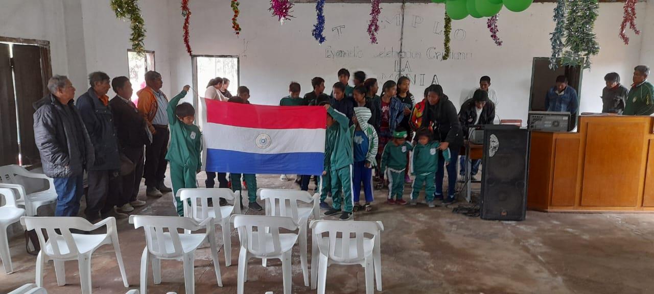 La parte de los cantos fue dirigida por Inge de Wiens, docente en el Colegio Indígena Yalve Sanga. Con un equipo de instrumentos hizo participar a los presentes.