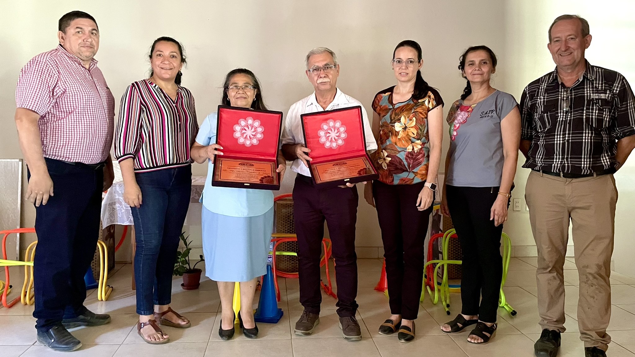 Otro momento especial fue el sencillo acto de reconocimiento a dos colaboradores que dejan la educación de la ASCIM por motivo de jubilación. La supervisora Filpa de Velazco tiene una trayectoria de 31 años en la ASCIM como profesora, directora, directora de área y supervisora. Su esposo, el director Alberto Velazco, tiene un recorrido de 29 años como docente y director en varias instituciones de la organización. La ASCIM manifestó su agradecimiento por los años de servicio con la entrega de placas de reconocimiento.