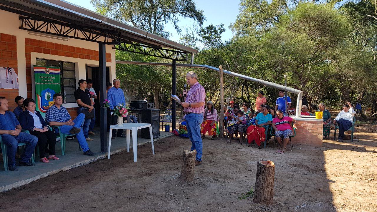 El gobernador Pauls felicitó por la obra iniciada en Monte Palmeras, que tiene tres años de existencia. Solicitó a la comunidad educativa aprovechar y cuidar las nuevas aulas de tal modo, que sus futuras generaciones puedan seguir aprovechando este espacio de fortalecimiento intelectual. El líder de la Comunidad Enlhet Yalve Sanga, Osorio Losa, agradeció a la gobernación de Boquerón y a la ASCIM por los aportes a Monte Palmeras. Lic. Elroy Funk, gerente del Departamento de Educación de la ASCIM, subrayó el progreso de la comunidad diciendo “si hay voluntad, hay camino”, reconociendo de esta manera el esfuerzo de los pobladores en busca del bien de la comunidad. El vicedirector de la ASCIM, Heinrich Dyck, agradeció a la Gobernación por la construcción de la escuela. Según él, esta obra demuestra que una cooperación entre entes estatales y entes privados es posible. Después de una oración de bendición de parte del pastor de la comunidad, las autoridades pasaron a abrir la cinta de inauguración y a descubrir la placa recordatoria.