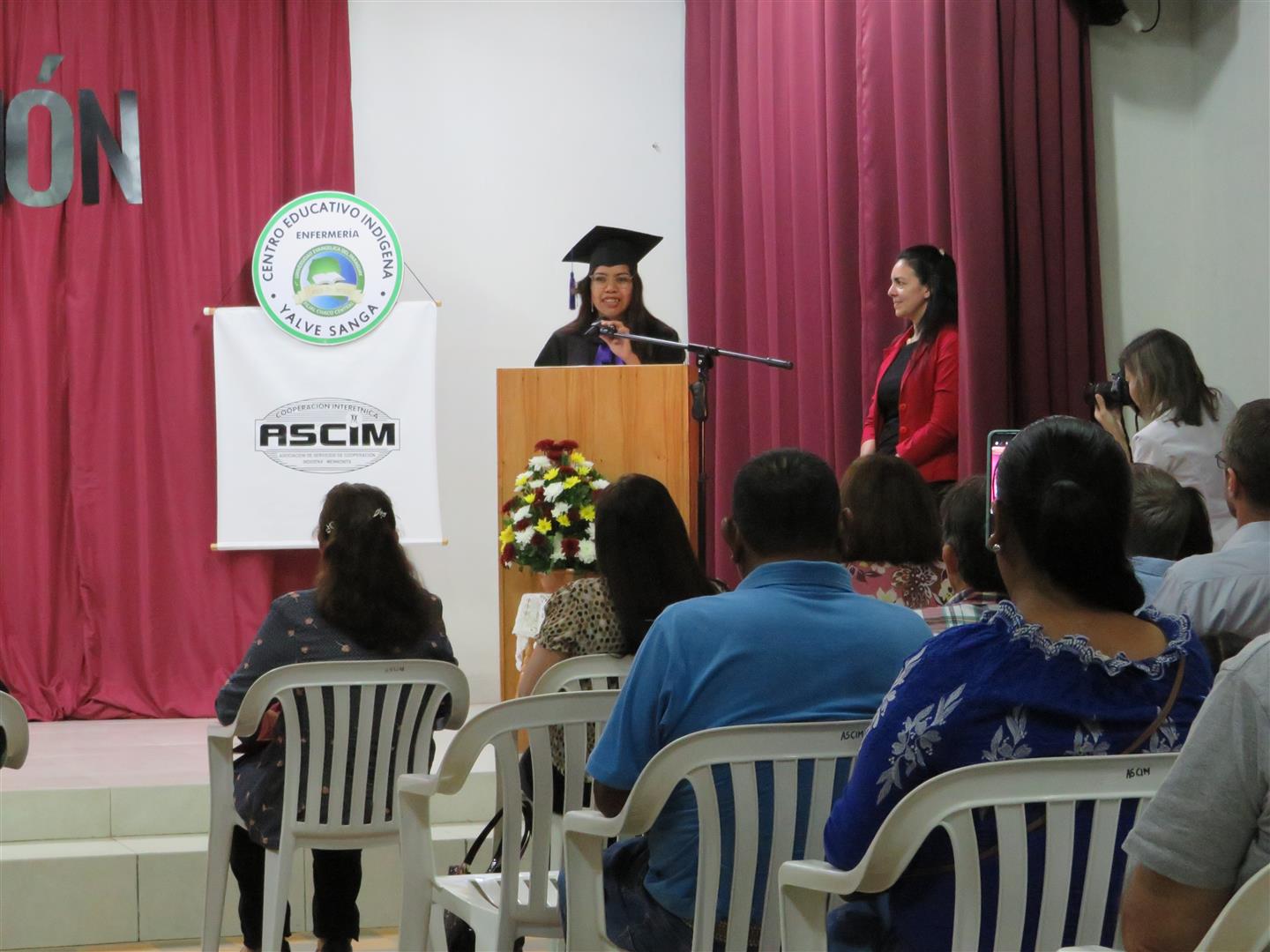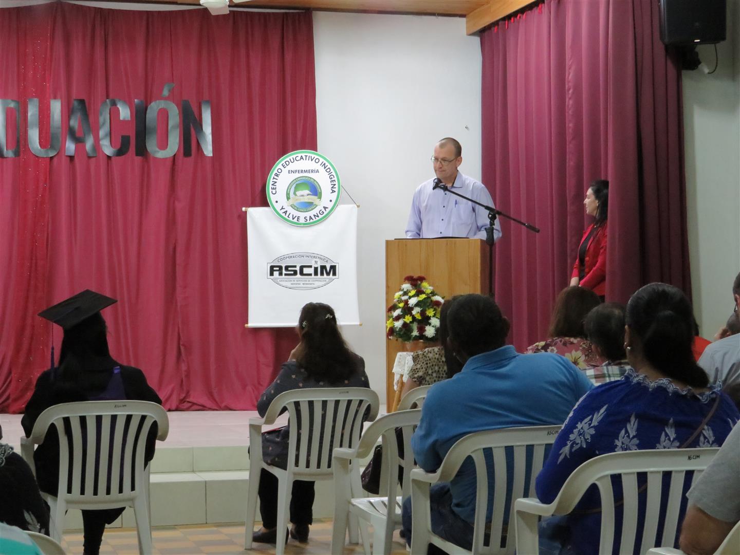 Continuamente, el Lic. Arnold Boschmann, en representación del presidente del consejo administrativo de la ASCIM, dejó un mensaje crucial en su breve discurso, enfatizando una vocación verdadera y genuina para los egresados, la importancia del servicio que brindan a la comunidad, no dejarse llevar por los recursos monetarios que pueden ofrecer, sino más bien, tener en cuenta que mayor es el sentido de una vocación sincera e integral, concluyendo, el Lic. Boschmann les deseó un bendecido futuro en su área de trabajo con la ayuda de nuestro Dios.
