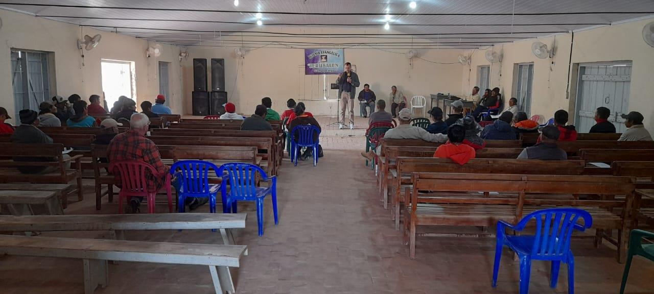 En la iglesia de Pozo Amarillo el Sr. Adolf Harder, gerente del Dpto. Intercultural-Social-Espiritual (DISE) de la ASCIM, presentó un tema sobre la integración. La participación de ambas comunidades fue muy buena.