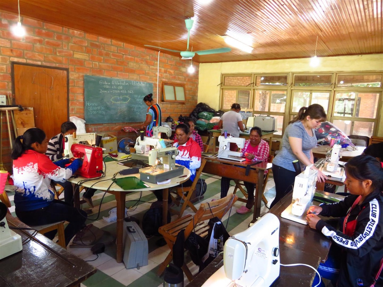 c) En estas capacitaciones de costura se trabaja en cooperación con la Fundación 2KP, con sede en Limpio, que proveen el currículo y las máquinas para alquilar.